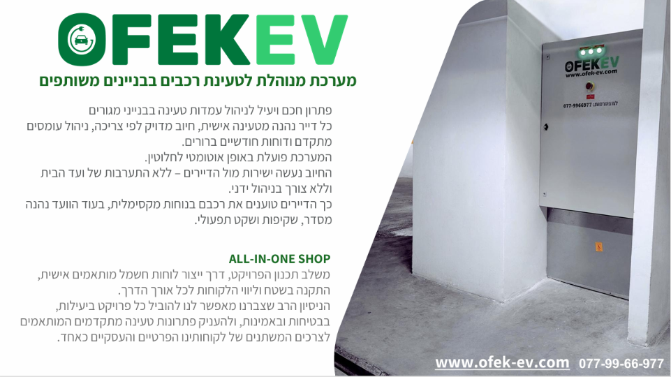 העתיד כבר כאן - OFEK EV מציגה פתרון טעינה חכם להטענת רכבים חשמליים בבנייני מגורים
